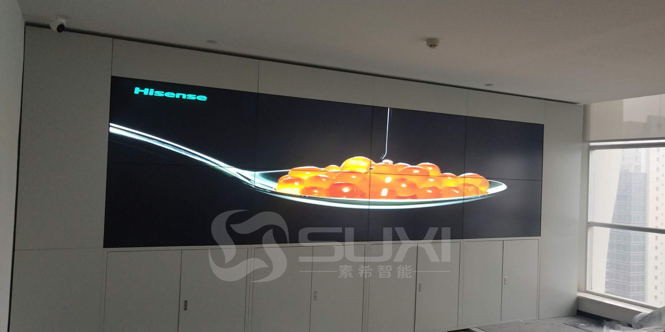 本項目使用的是上海素希55寸液晶拼接屏擁有1920*1080p超高分辨率、178°廣域視角以及超過60000小時的使用壽命。并且其支持7x24小時不間斷工作以及4000:1的超高對比度。用戶可以通過控制軟件實現(xiàn)對各種信號的切換:或者拼接成全屏顯示、任意組合顯示、圖像拉伸顯示、圖像漫游顯示、圖像疊加顯示等。其適用于安防監(jiān)控、展廳、教育、金融、車站碼頭、新能源等領(lǐng)域。
