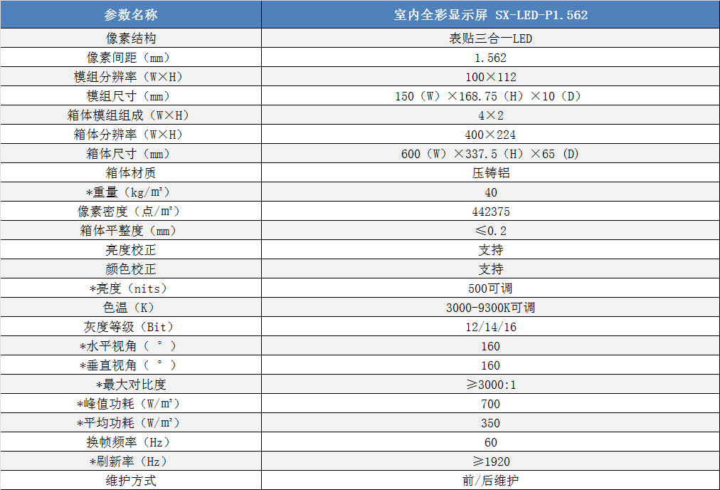 P1.562室內小間距高清全彩LED顯示屏技術參數(shù):