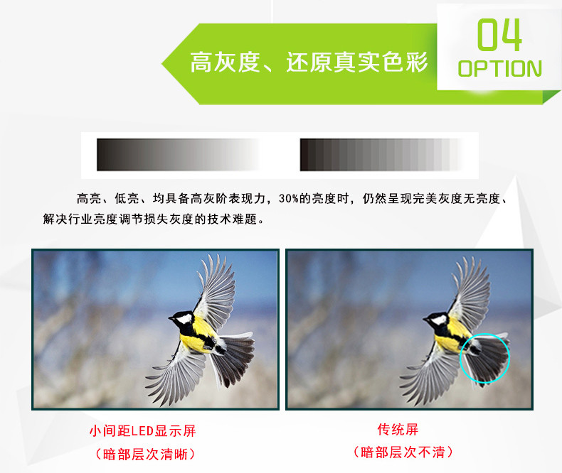 1、P1.562全彩顯示屏采用四燈合一HD LED封裝技術(集成SMD+COB優(yōu)點),該技術解決墨色一致性、拼接縫、漏光、維修等問題,同時具備高對比度、高集成、易維護、耐撞擊、防串光等特點。